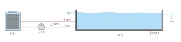 該機組同泳池直接連接,對泳池水進行循環(huán)加溫,在選型時需要考慮泳池恒溫時水溫比制其他熱水低,進行機組優(yōu)化配置,在相同輸入功率情況下,機組制熱水量大大增加,COP更高。室內(nèi)泳池,此機組可結(jié)合熱回收技術(shù),即干燥空氣達到除濕的效果又可回收熱量至主機制熱使用,從而達到達到恒溫、恒濕、熱水的多重需要,并使效率更高。