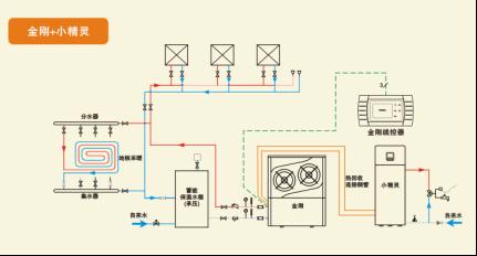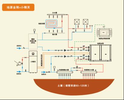 2、地源金剛機組提供制冷和制暖,小精靈提供生活熱水,在制冷+熱水模式運行下,地源金剛機組可實